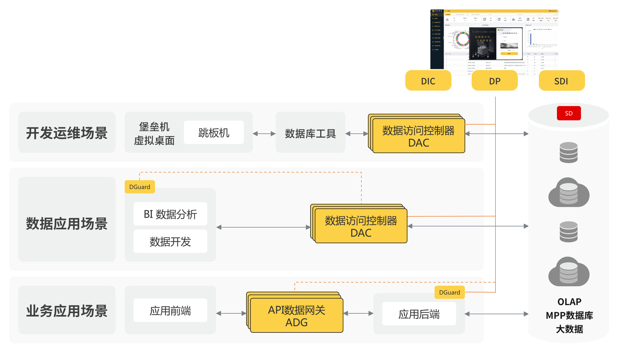 数据库运维场景:不改变原有数据库访问工具和使用习惯,顺利获得数据库认证代理机制实现数据库访问“实名化”,支持基于用户真实身份、岗位角色等属性实施个性化脱敏策略。 数据开发利用场景:解耦数据安全与业务,大幅降低脱敏策略数量和变更频率,满足 BI 数据分析、数据开发等场景的个性化数据动态脱敏需求。 业务应用场景:“免改造”、“免定制”实现业务应用动态数据脱敏,不影响编辑回写,不影响关联查询,显著减少数据安全与业务的摩擦。